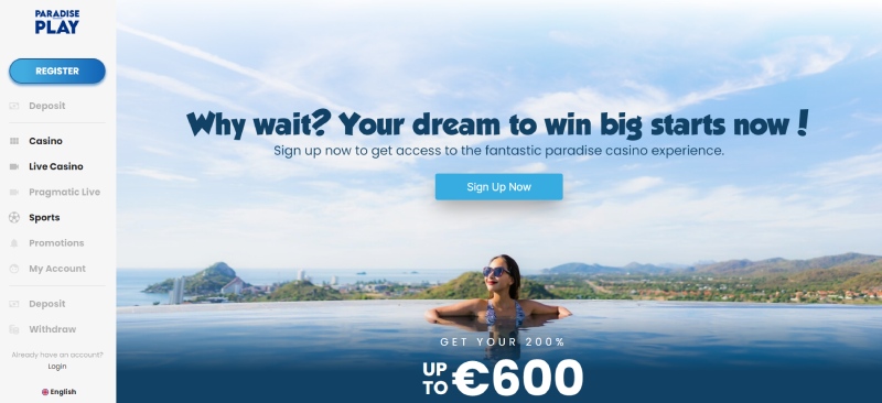 - ParadisePlay är ett topp mobilt online casino som ger en 200% upp till € 600 bonus och 250 gratissnurr till nya spelare.