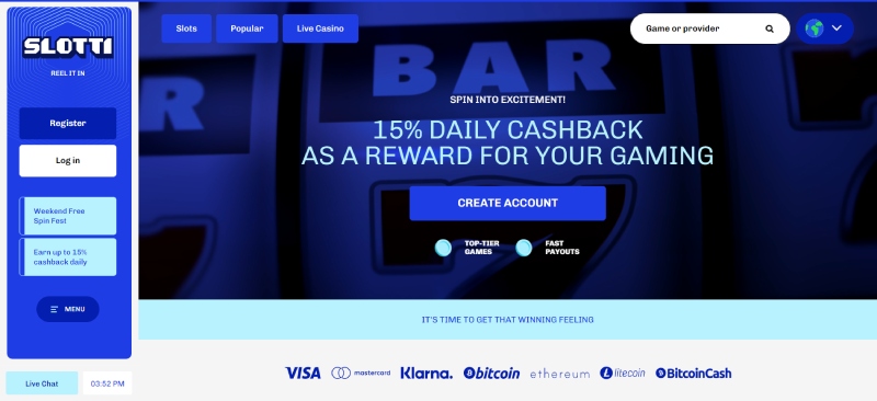 - Slotti är det bästa online casinot för bonusar och kampanjer som börjar med att ge nya spelare 15% daglig cashback.